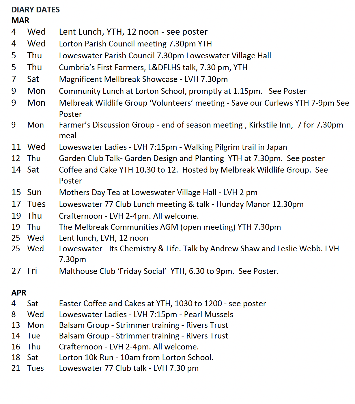 Melbreak Communities AGM – Yew Tree Hall – March 19th at 7:30pm
